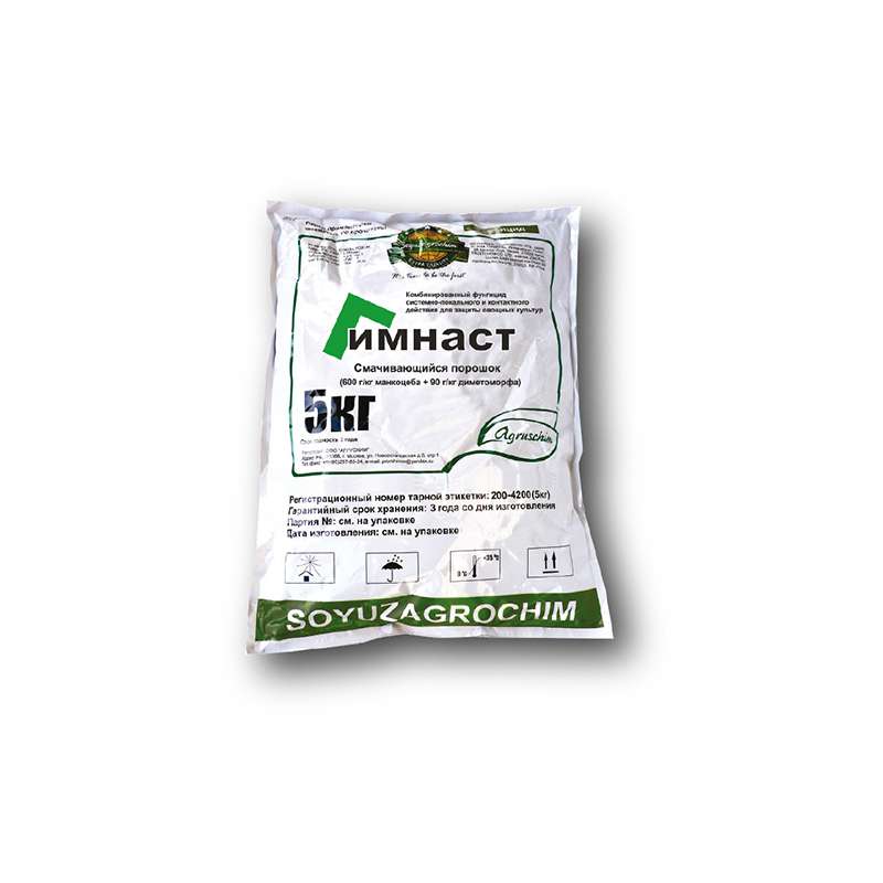 Гимнаст является комбинированным препаратом, состоящим из манкоцеба и диметоморфа, которые обладают разными механизмами действия, что существенно снижает риск возникновения резистентности. Рекомендуется чередовать применение Гимнаст с обработками фунгицидами из других химических классов.