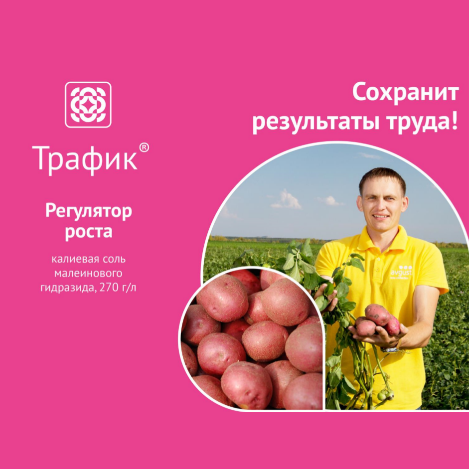 Трафик обеспечивает сохранение качества урожая с момента обработки до уборки, а затем при хранении продукции (до 9 месяцев).